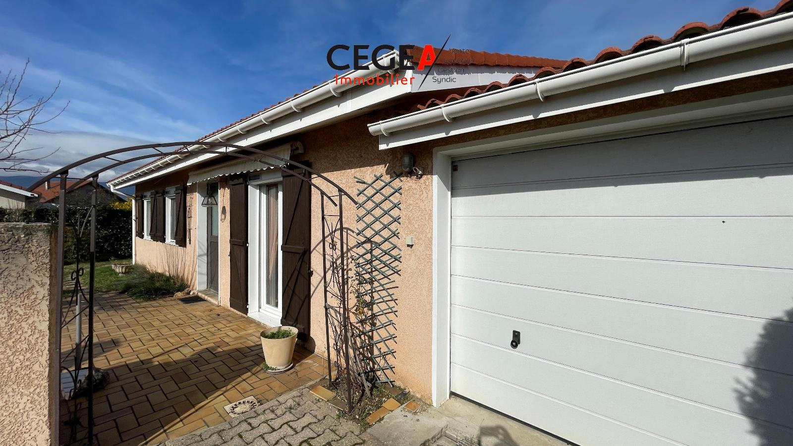 Maison plain-pied, 3 chambres - Maison plain-pied sans travaux d'une surface de 89 m2 habitable avec garage attenant et cave.